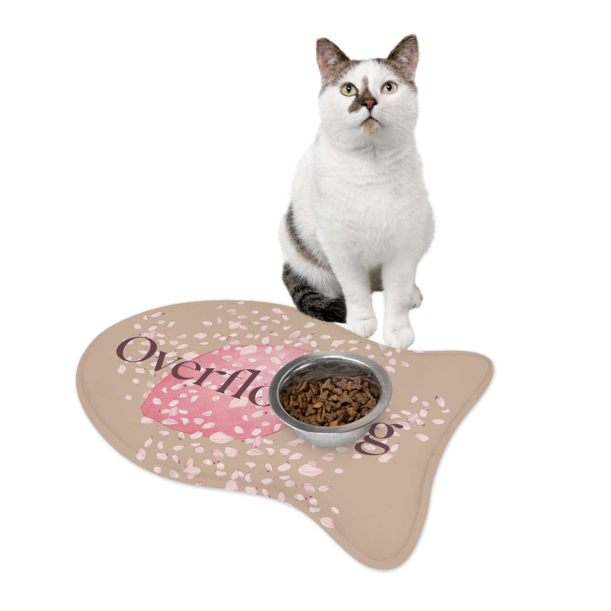 Let your pet dine with grace and abundance with our Overflowing Pet Feeding Mat. Inspired by the beauty of blessings that overflow, this mat features a serene beige backdrop adorned with cascading pink petals and a heart-centered design.