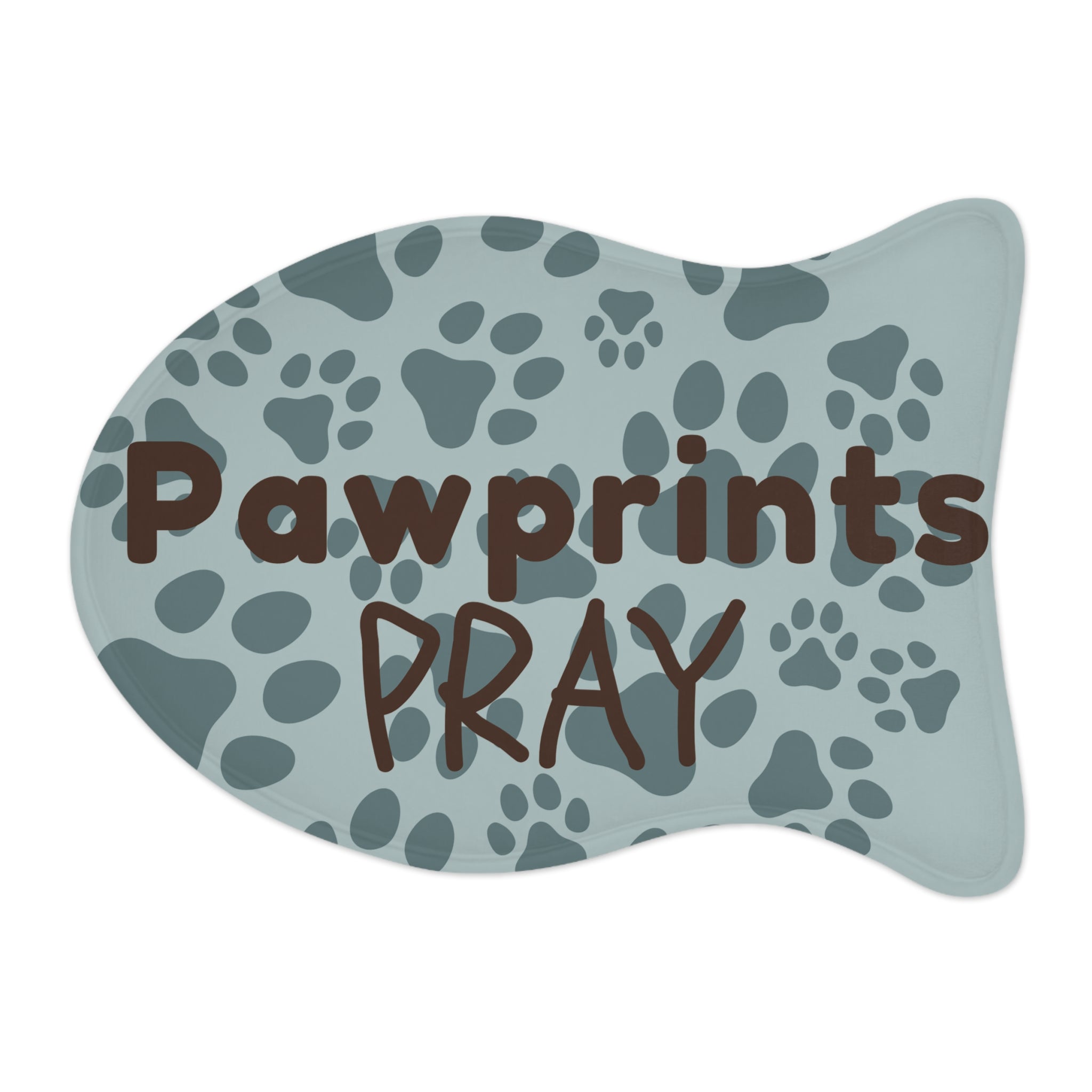 Pawprints Pray Adorable Pet Bowl Mat | Non-Slip Food Mat for Dogs & Cats