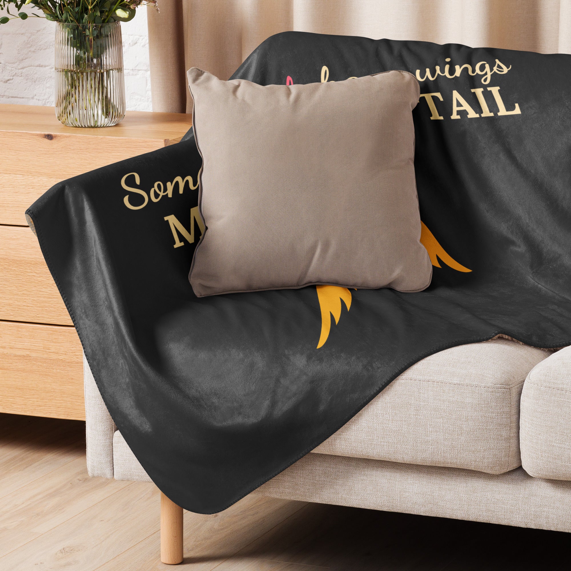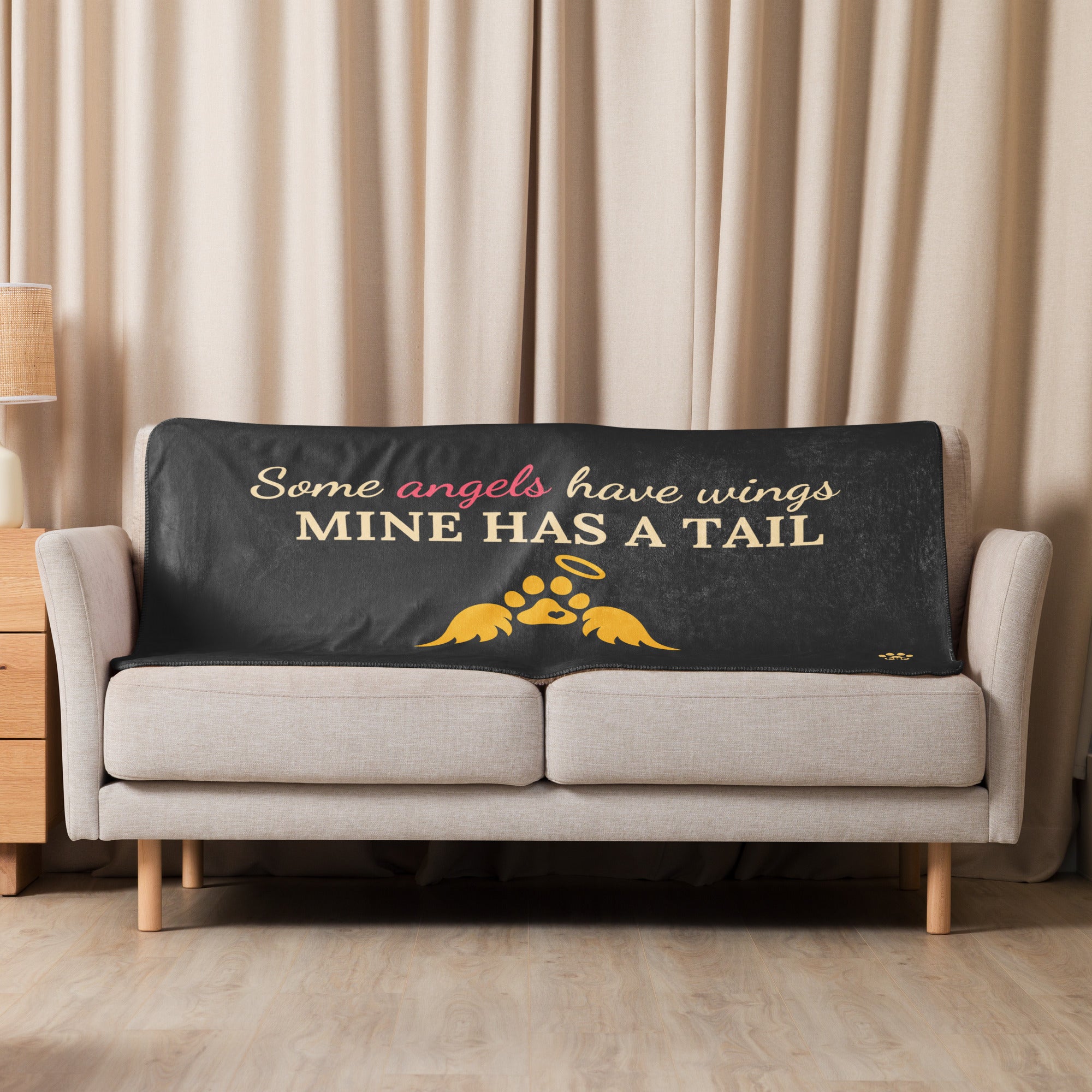 Bring a touch of faith and comfort to your home with our “Some Angels Have Wings, Mine Has a Tail” Sherpa Blanket. Pet lovers know their furry friends are heaven-sent. This super soft blanket features a sweet message and a charming paw print with angel wings and a halo. Soft, supportive, and perfect for snuggling, it’s a daily reminder that God’s love often comes with a wagging tail. Add it as an accent throw to your bed, wing-back chair, or couch. A great gift to a fellow believer who cherishes their angel. This blanket pairs well with our Some Angels Have Wings Mine Has A Tail Premium Accent Pillow in dark grey.