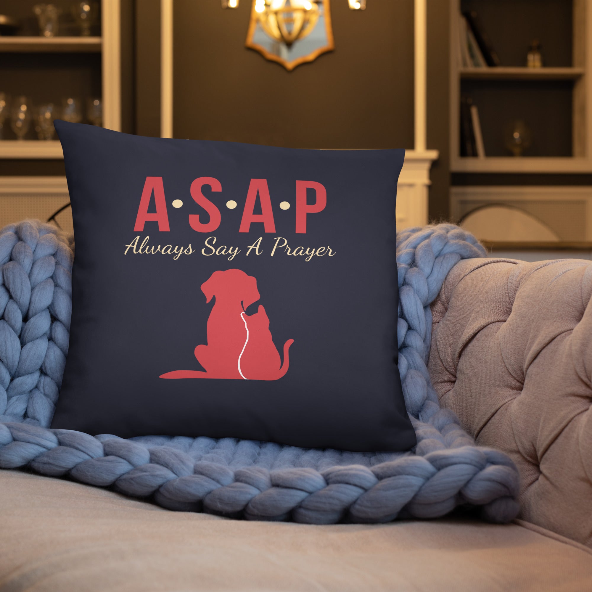 A.S.A.P. Always Say A Prayer Premium Accent Pillow | Charcoal Blue
