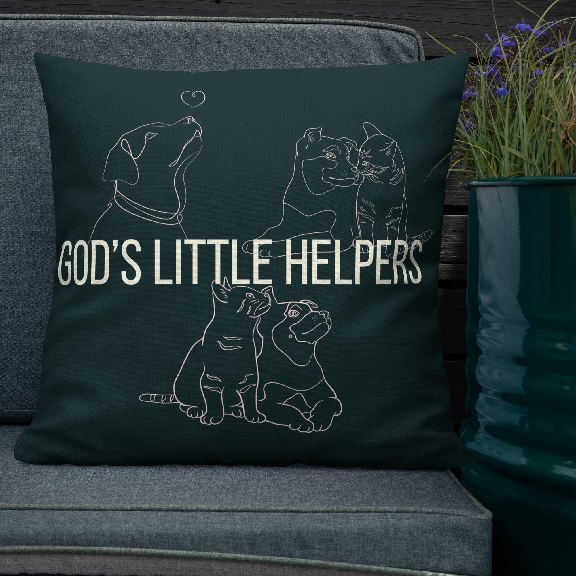 Heartwarming Message: Featuring outlines of dogs and cats gazing up at the sky, the pillow is adorned with the inspirational quote "God's Little Helpers," sparking joy and nostalgia in pet lovers.