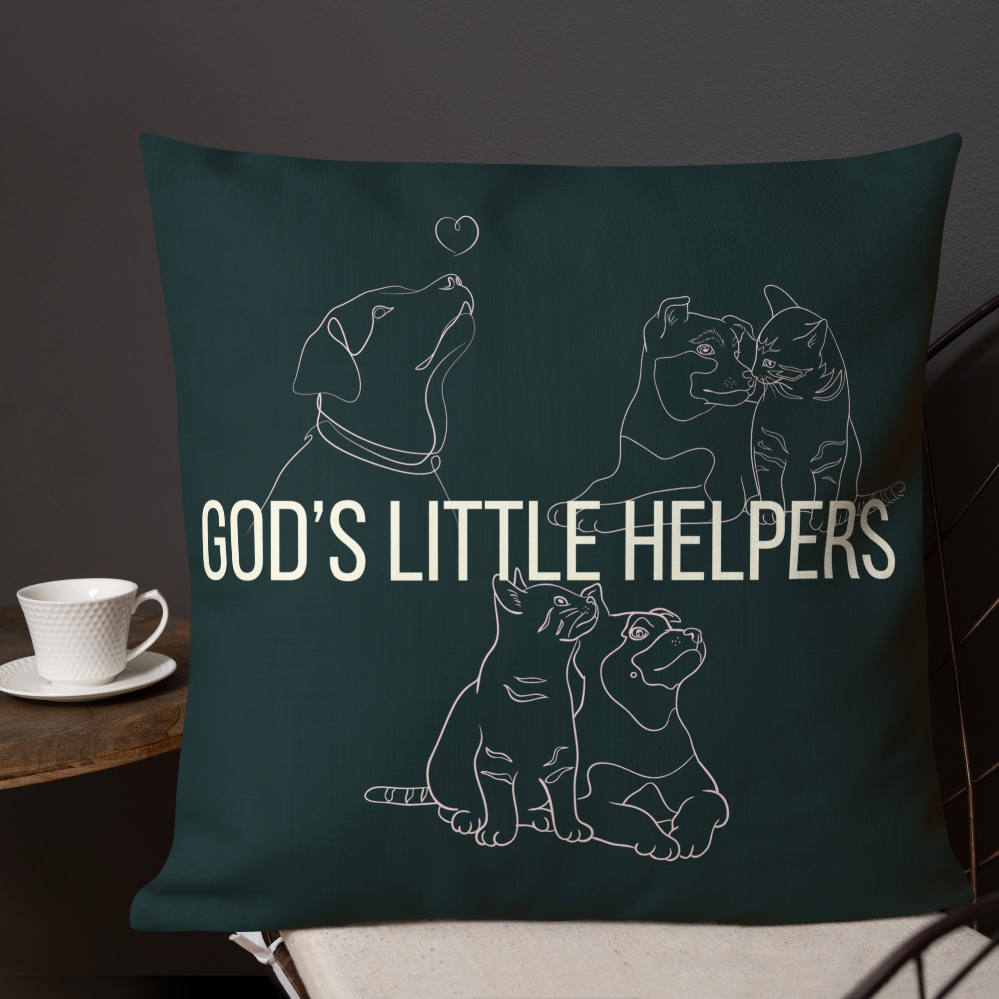 The God's Little Helpers Accent Pillow is a rich and charming addition that brings warmth and comfort to any room in your home. This delightful accent pillow with a premium feel serves as a gentle reminder that our furry friends are indeed God's little helpers, offering companionship and love in their special ways. This accent pairs well with our God's Little Helpers Soft Sherpa Blanket.