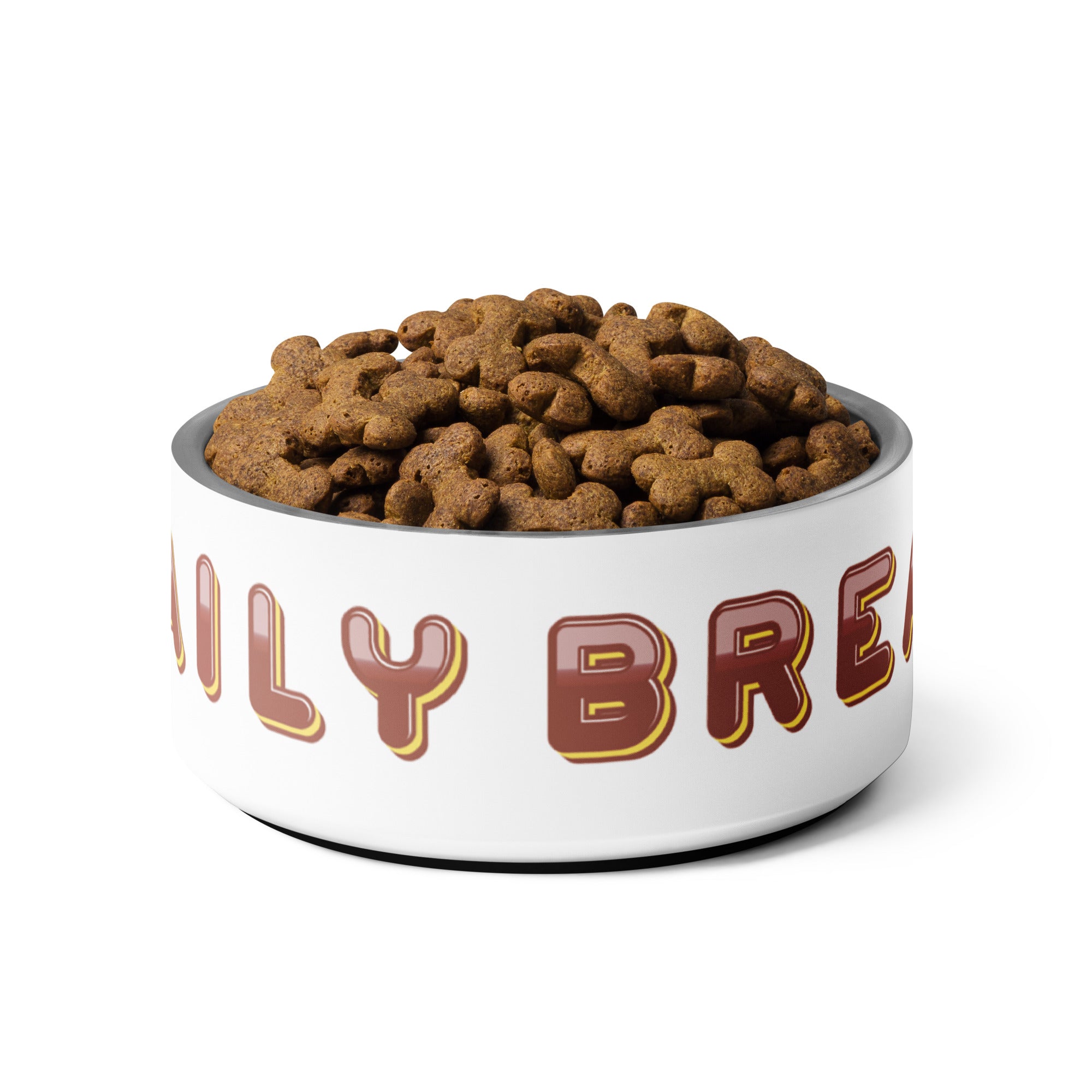 Serve up daily happiness with the Daily Bread Pet Bowl! Crafted from durable stainless steel and equipped with a non-slip rubber base, this bowl keeps mealtime safe and tidy. The cheerful design adds a playful touch to your pet’s feeding space while giving you long-lasting quality for food or water. This bowl is complemented by the Our Daily Bread Pet Feeding Mat.