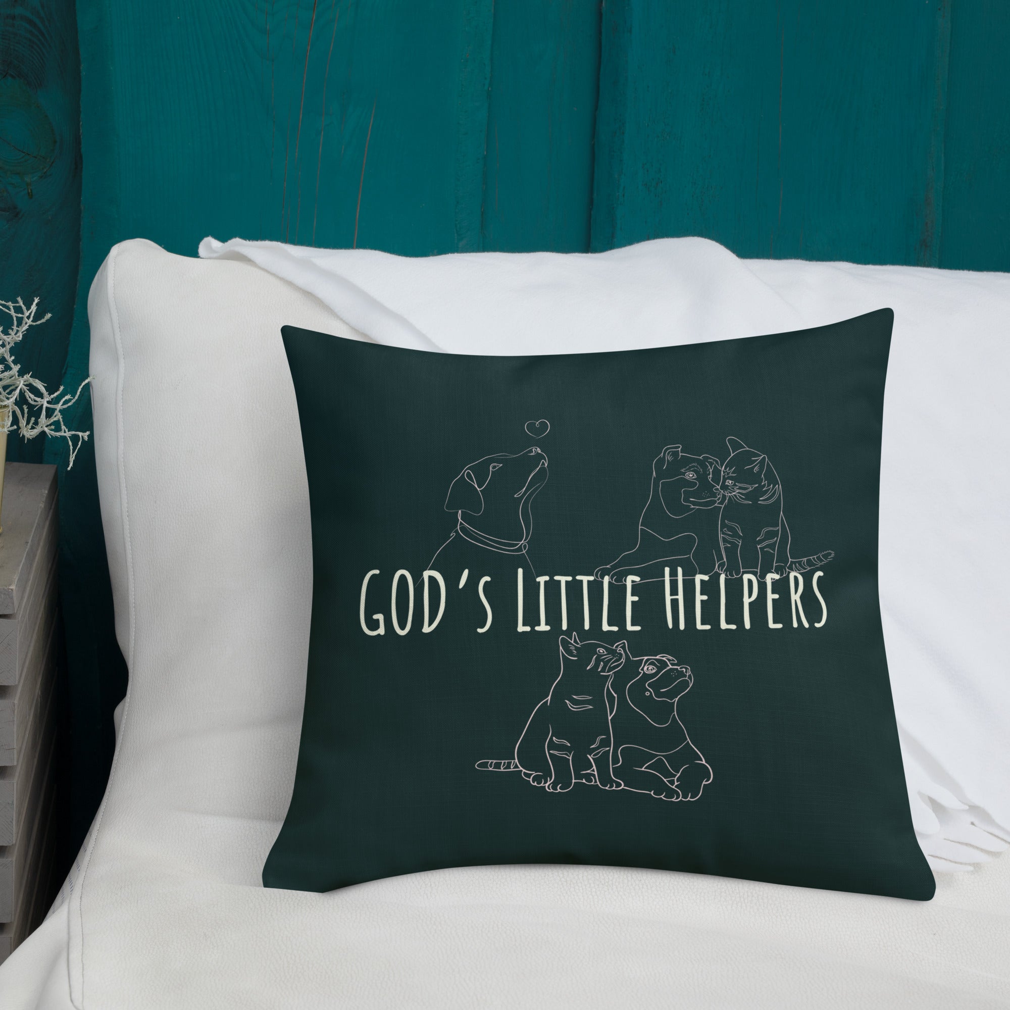 The God's Little Helpers Accent Pillow is a rich and charming addition that brings warmth and comfort to any room in your home. This delightful accent pillow with a premium feel serves as a gentle reminder that our furry friends are indeed God's little helpers, offering companionship and love in their special ways. This accent pairs well with our God's Little Helpers Soft Sherpa Blanket.